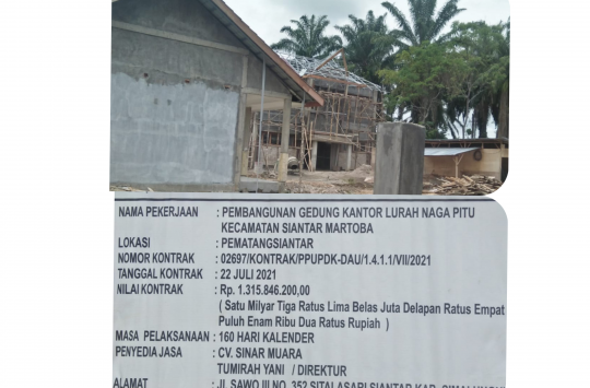 Pematangsiantar - Tender untuk pembangunan gedung kantor Lurah Naga Pitu, Kecamatan Siantar Martoba yang dilaksanakan Dinas Perumahan Rakyat Kawasan Pemukiman (PRKP) masih dipertanyakan Arif Sitanggang.