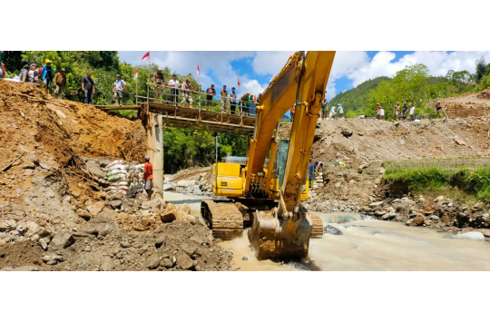 Doloksanggul – Pemerintah Daerah Kabupaten Humbang Hasundutan(Humbahas) mengerahkan alat berat untuk menangani kerusakan abutment atau sayap jembatan sementara Aek Sipoti yang berada di Kecamatan Onan Ganjang, tepatnya pada ruas jalan bukaan baru yang menghubungkan Desa Sampetua dengan Desa Batu Nagodang Siatas.