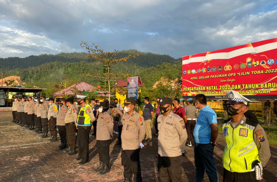 Tapteng - Polres Tapanuli Tengah (Tapteng) laksanakan apel pergeseran pasukan dalam rangka pengamanan ibadah malam natal di gereja wilayah Tapteng, Sabtu (24/12/2022) Pukul 17.30 Wib.