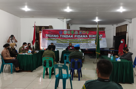 Pematangsiantar - Satgas Covid-19 Kota Pematangsiantar menggelar sidang di tempat atas pelanggaran protokol kesehatan (prokes) selama PPKM level 4, Selasa (24/8/2021) di Kantor Pariwisata, Jalan Merdeka.