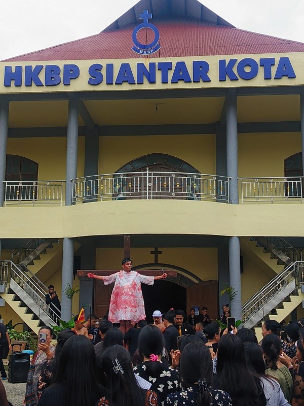 Selain itu, pada pukul 13.00 WIB, remaja naposo (pemuda) HKBP Siantar Kota juga mengadakan prosesi jalan salib.