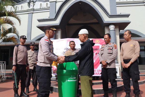 Dalam kesempatan tersebut, Polres Manggarai menyerahkan bantuan berupa alat-alat kebersihan seperti sapu ijuk, sapu lidi, kain lap pel lantai, dan tong sampah kepada masing-masing pengurus rumah ibadah.