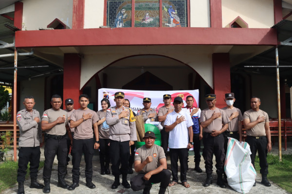 Selanjutnya, seluruh personel Polres Manggarai bersama-sama melaksanakan aksi pembersihan di area sekitar tempat ibadah.
