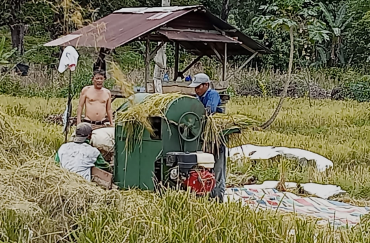 A Pardede (47), salah seorang petani yang dijumpai saat memanen padi di areal persawahannya, Jum'at (23/9), mengungkapkan, produksi hasil panen sedikit meningkat dibandingkan musim panen sebelumnya. Panas matahari dalam satu bulan terakhir dan hama yang tidak terlalu mengganggu, menjadi faktor meningkatnya produksi panen.