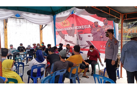 AKP Josia lebih lanjut menyampaikan bahwa Sasaran yang divaksin adalah usia 12 ke atas serta pencapaian warga yang divaksin lebih kurang 400 orang diberikan vaksinasi oleh tim vaksinator dibantu Bid Dokkes Poldasu .