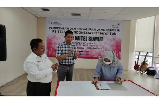 Pematangsiantar - PT Telkom Indonesia CDC Witel Sumut Rabu (12/10) menyerahkan bantuan dana bergulir kepada 17 calon Mitra Binaan Triwulan III -2022 Tahap 20 dari Pematang Siantar, Simalungun dan Karo.