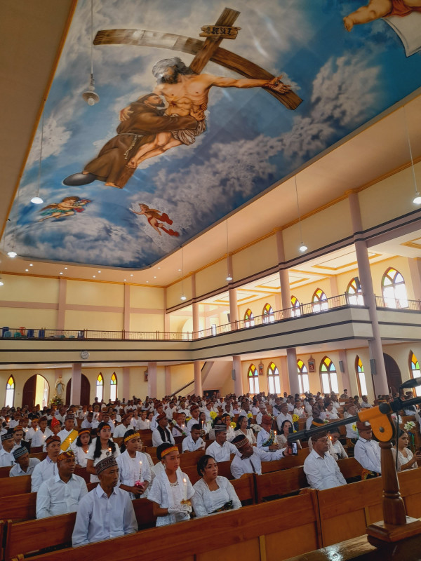 Perayaan Ekaristi dilaksanakan di Paroki Santu Fransiskus Asisi Karot, PKL 08.00-10.00 pagi waktu setempat.