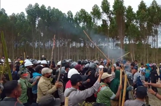 Dalam video itu, pihak perusahaan sempat mencoba menghampiri masyarakat, bahwa diawali teriakan. Polisi yang berdiri di depan mereka pun terdorong sehingga warga dan karyawan, security perusahaan sempat saling memukul menggunakan tongkat kayu.