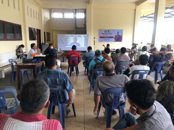 Melalui sambungan video conference, Martin Manurung menyaksikan langsung penyerahan bantuan secara simbolis kepada para penerima, yang dilaksanakan oleh staf dan Tim Martin Manurung Centre.