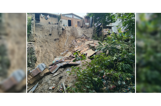Pematangsiantar - Tanah longsor akibat hujan yang menghancurkan bangunan bagian belakang rumah milik Herman Manik dan Suryati di Jalan Flores II Gang Damai, Kelurahan Bantan, Kecamatan Siantar Barat, Kamis (6/10/2022) lalu hingga kini belum mendapatkan perhatian dari Pemerintah Kota (Pemko) Pematangsiantar.