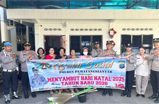 Pematangsiantar – Dalam rangka menyambut Perayaan Natal 2025 dan Tahun Baru 2026 (Nataru), jajaran Polsek Siantar Selatan Polres Pematangsiantar melaksanakan kegiatan bantuan sosial (bansos) kepada masyarakat dan jemaat Gereja Kristen Protestan Simalungun (GKPS) di Jalan Sudirman, Kota Pematangsiantar, Selasa (23/12/2025) pagi.