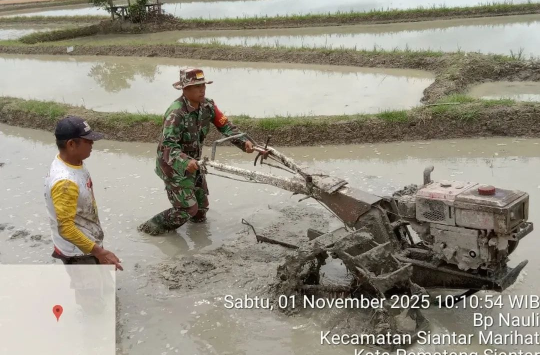 Pematangsiantar, Kabarnas.id — Sebagai upaya memperkuat ikatan dengan masyarakat sekaligus mendukung ketahanan pangan di wilayah binaan, Sertu D. Sirait dari Koramil 03/Siantar Selatan Kodim 0207/Simalungun melaksanakan kegiatan komunikasi sosial (Komsos) bersama Bestur Simanjuntak anggota Kelompok Tani Dosnitahi di lahan persawahan yang tengah digarap di Kelurahan Barigin Pancur Nauli, Kecamatan Siantar Marihat, Kota Pematang Siantar, pada hari Sabtu (1/11/2025).