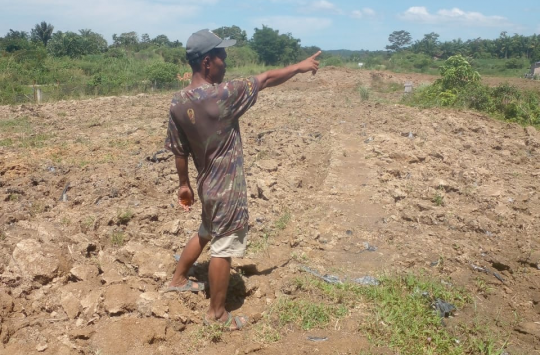 "Setelah lahan saya beli, kemudian beberapa kali saya bercocok tanam, mulai dari ubi, jagung dan porang. Kemudian saya tanamin sawit dan sudah beberapa kali panen," ucapnya dengan menambahkan, seiring waktu tiang perbatasan tanah dan parit keliling dibuatnya.