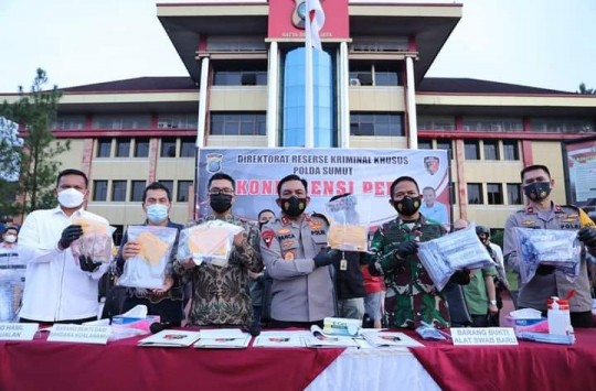 Kapolda Sumut, Irjen Pol RZ Panca Putra Simanjuntak mengatakan, lima tersangka berinisial PM, SR, DJ, M, dan R dijerat Undang-undang (UU) kesehatan dengan ancaman penjara paling lama 10 tahun dan denda paling banyak Rp10 miliar dan UU perlindungan konsumen dengan ancaman pidana maksimal 5 tahun dan denda Rp2 miliar.