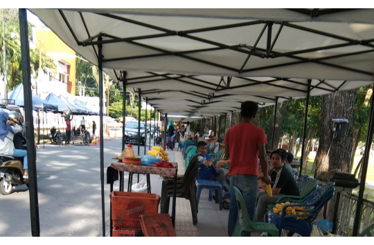 Pematangsiantar - Tenda warna putih berbentuk stan untuk bazar yang dipasang di atas trotoar Jalan Perintis Kemerdekaan, Kelurahan Proklamasi, Kecamatan Siantar Barat, Kota Pematangsiantar, Jumat (6/1/2023) menuai polemik.