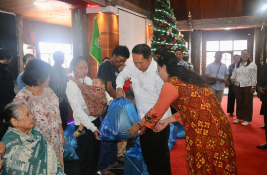Usai ibadah, Bupati Tapanuli Utara, Dr. Jonius Taripar Parsaoran Hutabarat, S.Si., M.Si., bersama Ketua TP-PKK, Ketua perangkat daerah, dan Sekretaris Daerah menyerahkan secara simbolis 50 paket bantuan kepada perwakilan warga dari Tarutung dan Siatas Barita.