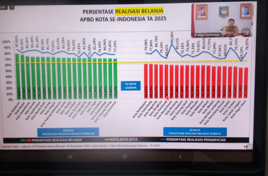 SIANTAR, Data dari Dirjen Bina Keuangan daerah Kementerian Dalam Negeri tertanggal 14 November 2025, Pematangsiantar masuk urutan ke 5 terbawah atau terendah dari 98 kota se-Indonesia soal serapan anggaran APBD Tahun 2025 dengan besaran 54,61 persen
