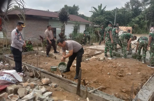 Di lokasi, prajurit TNI, anggota Polri, dan warga berbagi tugas sesuai kebutuhan. Sebagian mengangkut material seperti pasir dan batu bata, lainnya mengaduk semen serta memasang rangka bangunan. Kolaborasi lintas institusi ini menunjukkan kebersamaan tanpa sekat, dengan satu tujuan menghadirkan hunian yang aman dan nyaman bagi Abdul Saragih dan keluarganya.