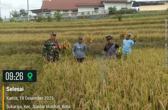 Pematangsiantar – Kebersamaan antara TNI dan masyarakat kembali terasa hangat melalui kegiatan panen padi yang digelar oleh Kelompok Tani Nainggolan di Kelurahan Sukaraja, Kecamatan Siantar Marihat, Kota Pematangsiantar, Kamis (18/12/2025).