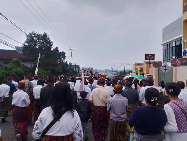 Dengan penuh kebersamaan umat kembali ke pusat Paroki, suasana berlangsung aman tertib dan lancar.