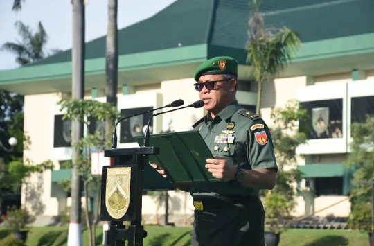 SEMARANG – Kepala Kelompok Staf Ahli (Kapok Sahli) Pangdam IV/Diponegoro Brigjen TNI Abdul Hanis, S.I.P., M.Si. memimpin Upacara Bendera 17-an Bulan Desember 2025 yang digelar di Lapangan Makodam IV/Diponegoro, Rabu (17/12/2025).