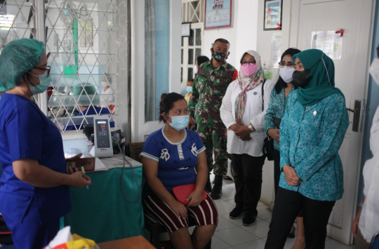 Ny. Syahputri Hefriansyah Hutabarat selaku Ketua TP PKK langsung meninjau langsung vaksinasi tersebut dan sekaligus mengajak para ibu hamil dan menyusui agar bersedia divaksin.