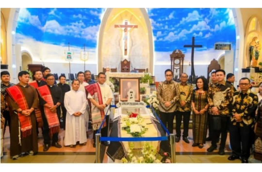 “Semasa hidupnya beliau menjembatani perbedaan, menyatukan dalam kasih, dan menjalankan moto tulusnya yakni Omnibus Omnia, yang berarti ‘segala untuk semua’. Moto ini bukan sekadar kata‑kata, melainkan panduan nyata pelayanan beliau,” ucap Walikota.