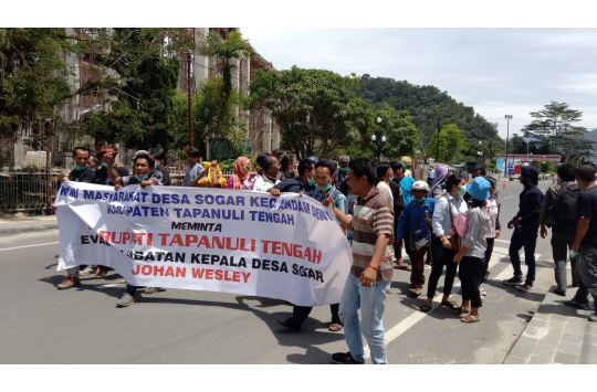 "Kita meminta Pj Bupati Tapteng, agar memberhentikan Kades Sogar, Johan Wesly dari jabatannya," ujar orator aksi Daniel Simamora.
