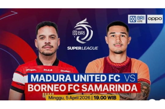 Pematangsiantar– Pertandingan Madura United vs Borneo FC Samarinda dalam lanjutan Super League 2026 berlangsung sengit. Hingga menit ke-60, Borneo FC untuk sementara unggul 2-1 atas tuan rumah Madura United, Minggu (5/4/2026) malam.